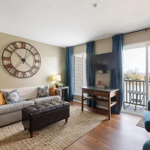 Riverfront Condo Minutes from Broadway享有市景,提供健身中心和庭院,距离约翰尼现金博物馆约有19分钟步行路程。这家度假屋享有湖景,配有游泳池,也配有免费WiFi。 这家空调度假屋配有1间独立卧室、起居室、带冰箱和洗碗机的设施齐全的厨房以及1间浴室。这家度假屋还配备电视以及1间带吹风机的浴室。