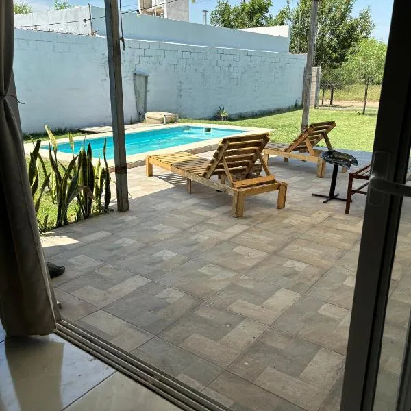 Casa hasta 6 personas位于玛利亚镇,提供空调客房、庭院和免费WiFi,距离维拉玛丽亚圆形剧场有6.5公里。这家自助式度假屋配有私人泳池、花园和免费私人停车位。 这家度假屋配备1间卧室、带冰箱和烤箱的设施齐全的厨房以及1间带坐浴盆和淋浴设施的浴室。这家度假屋也提供休息区和1间浴室。 里奥夸尔托机场距离住宿有126公里。