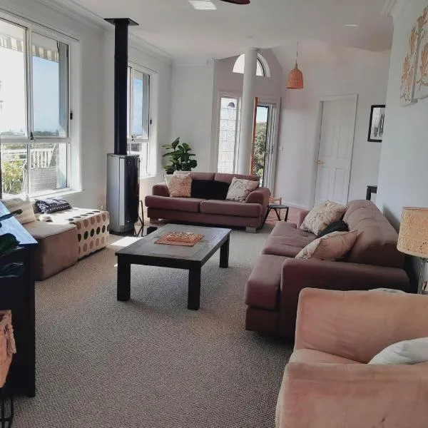 Treeview - A beautiful 3-Bed House in Kiama坐落于新南威尔士的凯阿玛,拥有阳台,享有花园景。这家住宿距离凯马冲浪海滩(Kiama Surf Beach)有8分钟步行路程,配备花园和免费私人停车位。 这家空调度假屋配有3间独立卧室、、2间带免费洗浴用品和吹风机的浴室以及起居室。这家度假屋还提供电视、休息区、洗衣机以及2间带浴缸的浴室。