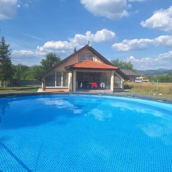 Vila Hasandić坐落于维索科,配有客房和阳台。这家自助式别墅拥有花园、烧烤设施、免费WiFi和免费私人停车位。 这家空调别墅配有1间卧室、起居室、带冰箱和电热水壶的设施齐全的厨房以及1间带淋浴设施和热水浴池的浴室。这家别墅还配备电视以及1间带免费洗浴用品的浴室。 这家别墅距离萨拉热窝隧道有40公里,距离拉丁桥有43公里。萨拉热窝国际机场距离住宿有37公里。