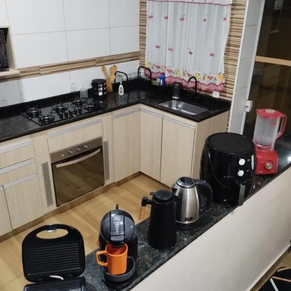 Joia do Pepira坐落于圣保罗州的布罗塔斯,配有阳台。这家自助式度假屋拥有花园、烧烤设施、免费WiFi和免费私人停车位。 这家空调度假屋配有1间卧室以及1间带坐浴盆、淋浴设施和免费洗浴用品的浴室。这家度假屋配备露台,也拥有平板电视、1间带浴缸和吹风机的浴室以及带微波炉、迷你吧和炉灶的设施齐全的小厨房。 这家度假屋距离Recanto das Cachoeiras Park有18公里。