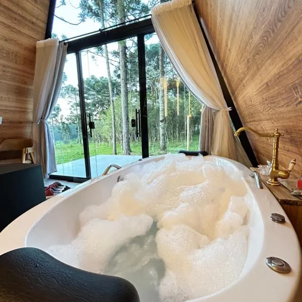 Cabanas Arroio Da Serra位于坎巴拉,提供带免费WiFi的山景客房,配有花园。这家小木屋配备免费私人停车位。客人可以在周边地区体验徒步和垂钓等活动。 这家空调小木屋配有1间卧室、起居室、带冰箱和电热水壶的设施齐全的厨房以及1间带坐浴盆和淋浴设施的浴室。住宿配有1间带热水浴池和浴缸的浴室,提供吹风机和浴袍。 这家小木屋的客人可以使用热水浴池。...