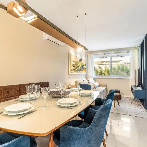 Loft Exclusivo Gramado享有池景,提供户外游泳池和阳台,距离格拉马杜巴士站约有4.3公里。这家自助式度假屋配有私人泳池、花园和免费私人停车位。 这家空调度假屋配有1间卧室、起居室、带微波炉和咖啡机的设施齐全的厨房以及1间带坐浴盆和淋浴设施的浴室。1间浴室配有热水浴池,也为客人提供吹风机,提供毛巾和床上用品。 这家度假屋的客人可以使用热水浴池。