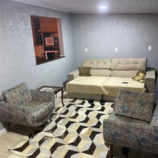 Sobrado terreo aconchegante位于卡庞达卡诺阿,配备带庭院和免费WiFi的自助式住宿。这家住宿距离卡波达卡诺阿海滩(Capao da Canoa Beach)有1.8公里,提供花园和免费私人停车位。 这家空调度假屋配有2间卧室、起居室、带冰箱和咖啡机的设施齐全的厨房以及2间带淋浴设施和吹风机的浴室。这家度假屋也提供休息区和2间浴室。 萨尔加多机场距离住宿有132公里。