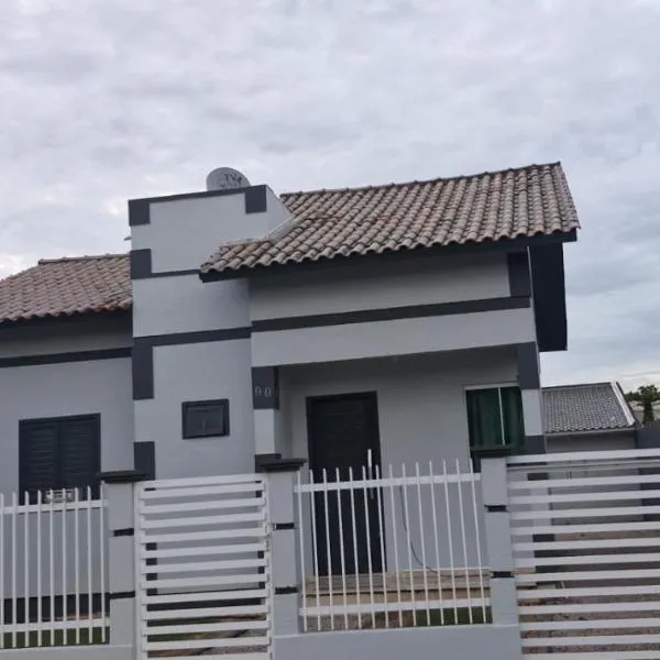 Casa A Cammino di Venezia Hospedagem pra toda familia位于圣卡塔琳娜州的Nova Veneza,拥有阳台,享有市景。这家自助式度假屋配有花园、烧烤设施、免费WiFi和免费私人停车位。 这家空调度假屋配有3间卧室、起居室、带冰箱和咖啡机的设施齐全的厨房以及2间带淋浴设施和免费洗浴用品的浴室。这家度假屋还提供休息区、洗衣机以及2间带吹风机的浴室。...