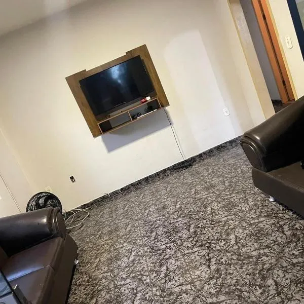 Sobrado Piúma位于圣埃斯皮里图州的皮乌马,配有庭院。这家住宿的客人可以使用阳台、免费私人停车位和免费WiFi。 这家度假屋配有2间卧室、起居室、平板电视、带用餐区的设施齐全的小厨房以及1间带淋浴设施的浴室。这家度假屋也为客人提供1间浴室。 这家度假屋距离皮马海滩(Piuma Beach)有7分钟步行路程,距离西丽泻湖有36公里。维多利亚机场距离住宿有104公里。