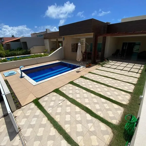 Casa Paripueira Maceió Alagoas Condomínio Acquaville D11位于帕里普埃拉,提供带免费WiFi的池景客房,配备户外游泳池、花园和露台。这家住宿提供私人泳池和免费私人停车位。 这家空调度假屋配有3间卧室、起居室、带冰箱和咖啡机的设施齐全的厨房以及5间带淋浴设施的浴室。这家度假屋也提供休息区和5间浴室。 这家度假屋提供汽车租赁服务。