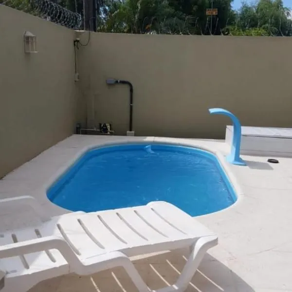 Aconchego do Amor com Suíte com piscina位于佩洛塔斯,配备全年开放的室外泳池,享有池景。这家住宿的客人可以使用桌球台和免费私人停车位。 这家空调度假屋配有2间卧室、起居室、带冰箱和电热水壶的设施齐全的厨房以及2间带淋浴设施的浴室。这家度假屋也提供休息区和2间浴室。 这家度假屋提供烧烤设施。 德佩罗塔斯国际机场距离住宿有5公里。