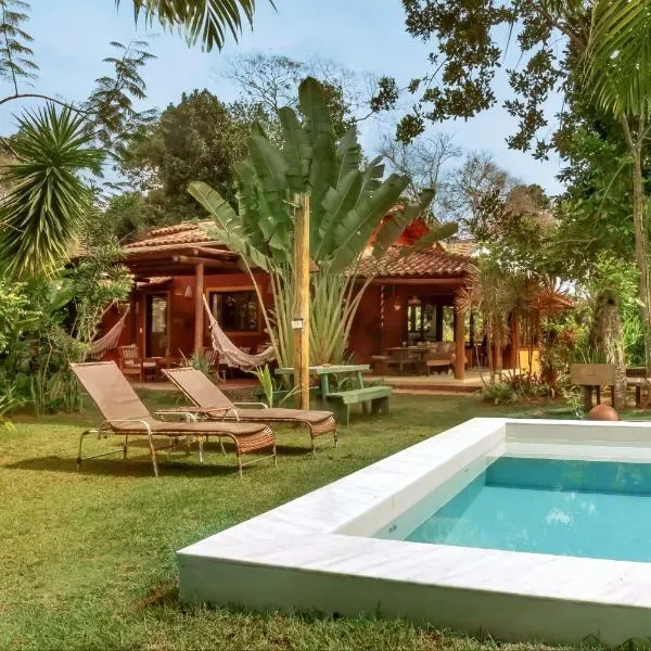 Boasting a patio with garden views, an outdoor swimming pool and a garden, Casa sauá Trancoso can be found in Porto Seguro, close to Quadrado Square and 2.6 km from Coqueiros Beach.