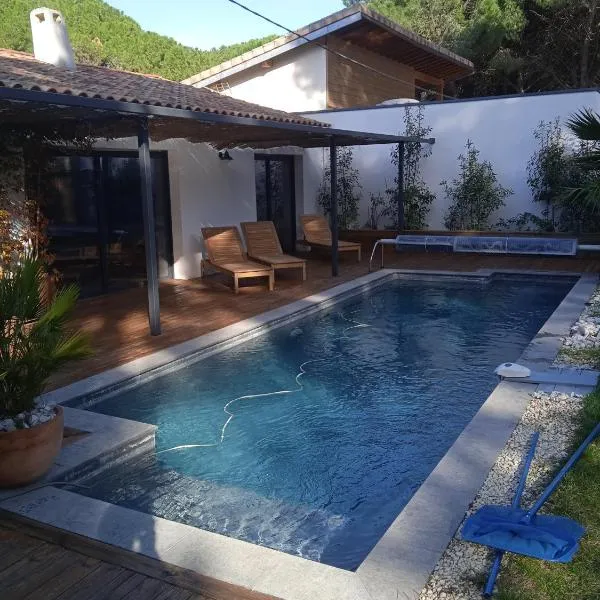 Mazet du pêcheur坐落于圣洛朗代古兹,提供户外游泳池,享有花园景,距离蒙彼利埃展览中心有28公里,距离蒙彼利埃竞技场有29公里。这家自助式度假屋拥有私人泳池、花园和免费私人停车位。 这家度假屋配有3间卧室、2间浴室、床上用品、毛巾、平板电视、用餐区、设施齐全的厨房以及池景露台。这家空调度假屋还配备休息区、洗衣机以及2间带淋浴设施的浴室。