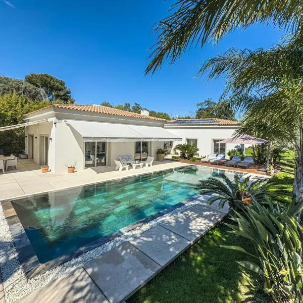 Villa piscine privée, jardin sur Antibes, pour 8 à 10 pers位于昂蒂布,提供带免费WiFi的池景客房,配备季节性室外泳池、花园和露台。这家住宿享有花园景,配备阳台。 这家空调别墅配有4间卧室、起居室、带冰箱和咖啡机的设施齐全的厨房以及2间带淋浴设施和免费洗浴用品的浴室。2间浴室配有浴缸,也提供吹风机,提供毛巾和床上用品。...