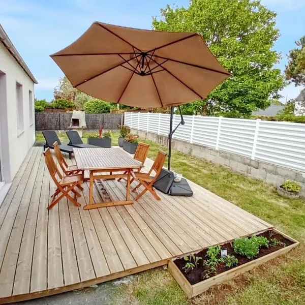 Kerlean, plage des Sables Blancs à 700m!坐落于孔卡尔诺,提供露台,享有花园景,距离坎佩尔火车站有26公里,距离布列塔尼博物馆有26公里。这家住宿距离赛波斯布兰奇海滩(Plage Sables Blancs)有9分钟步行路程,配备花园和免费私人停车位。...