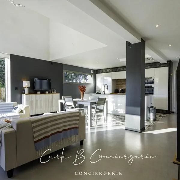 Sittelles lodges cube位于孔卡尔诺,提供带免费WiFi的花园景客房,配有露台。这家住宿距离坎佩尔火车站有24公里,配备花园和免费私人停车位。 这家别墅拥有3间卧室、带卫星频道的平板电视、带冰箱和洗碗机的设施齐全的厨房、洗衣机以及1间带淋浴设施的浴室。1间浴室提供热水浴池和吹风机。 这家别墅提供热水浴池。 Sittelles lodges...