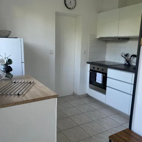 Charmant T3 privé avec vue et accès piscine位于Basse-Goulaine,距离独特地方博物馆仅有8.5公里,提供季节性室外泳池、私家海滩、餐厅和免费WiFi。这家自助式度假屋拥有私人泳池、花园和免费私人停车位。 这家度假屋提供露台,享有花园景,配有2间卧室、起居室、平板电视、带冰箱和烤箱的设施齐全的厨房以及1间带淋浴设施的浴室。1间浴室提供吹风机。