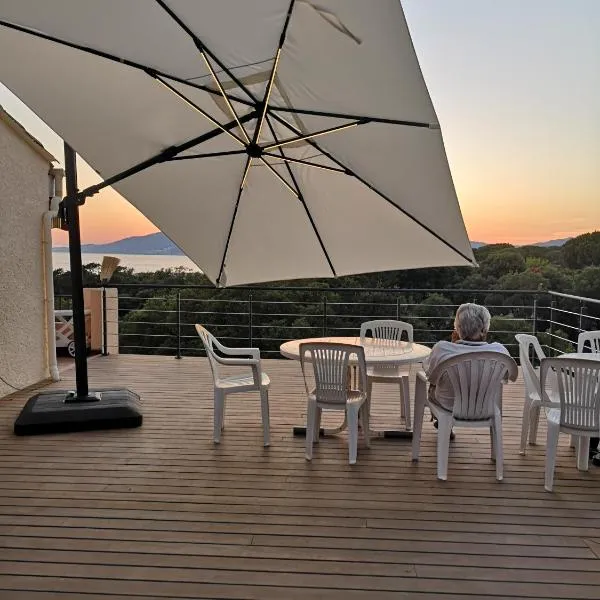Terra Di Sole - Vue mer et montagne坐落于Grosseto-Prugna,距离维瓦海滩(Viva)有13分钟步行路程,距离南普安特角海滩(Pointe Sud)有1.8公里,提供免费WiFi和空调。这家住宿距离天堂水上乐园海滩(Paradisu Scaglione Cove Beach)有5分钟步行路程,配备花园和免费私人停车位。