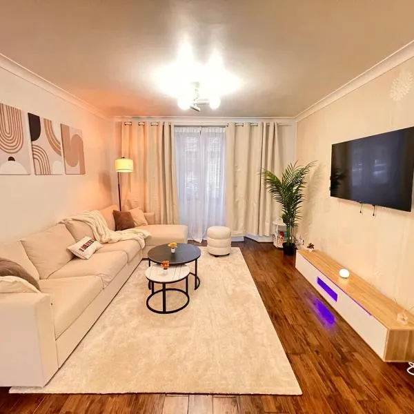London Town House坐落于Seven Kings,提供免费WiFi和平板电视等设施,距离间士山有4.1公里,距离伊斯塔木有6公里。这家住宿距离巴金有3.9公里,配备露台和免费私人停车位。 这家度假屋配有5间卧室、设施齐全的厨房和2间浴室。这家度假屋也拥有2间浴室。 这家度假屋距离斯尼亚斯卜有7.6公里,距离南伍德福德有8.3公里。伦敦城市机场距离住宿有9公里。