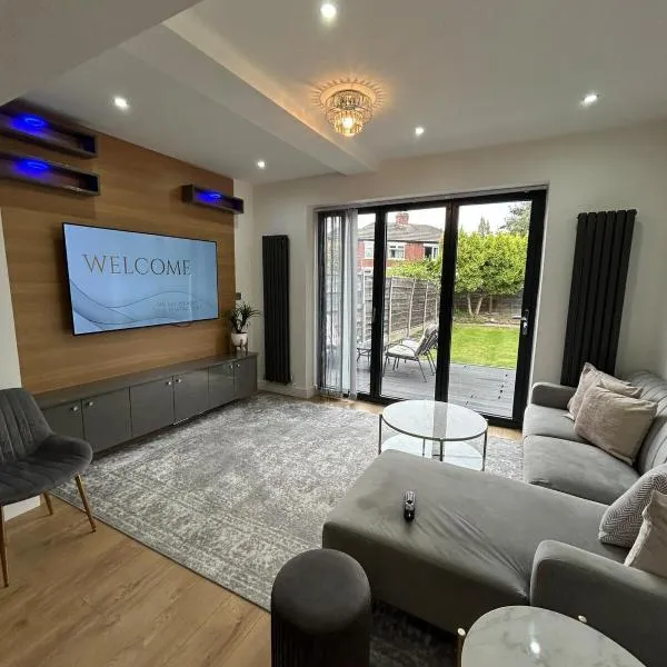 3 Bed Stockport Home by City SuperHost坐落于曼彻斯特,距离弗莱彻苔藓植物园有3.9公里,配备庭院、花园和免费WiFi。这家度假屋距离曼彻斯特阿波罗剧院有8.5公里,距离曼彻斯特大学有8.9公里。 这家度假屋提供3间卧室、带冰箱和烤箱的厨房、洗衣机以及1间带吹风机的浴室。这家度假屋也拥有1间浴室。