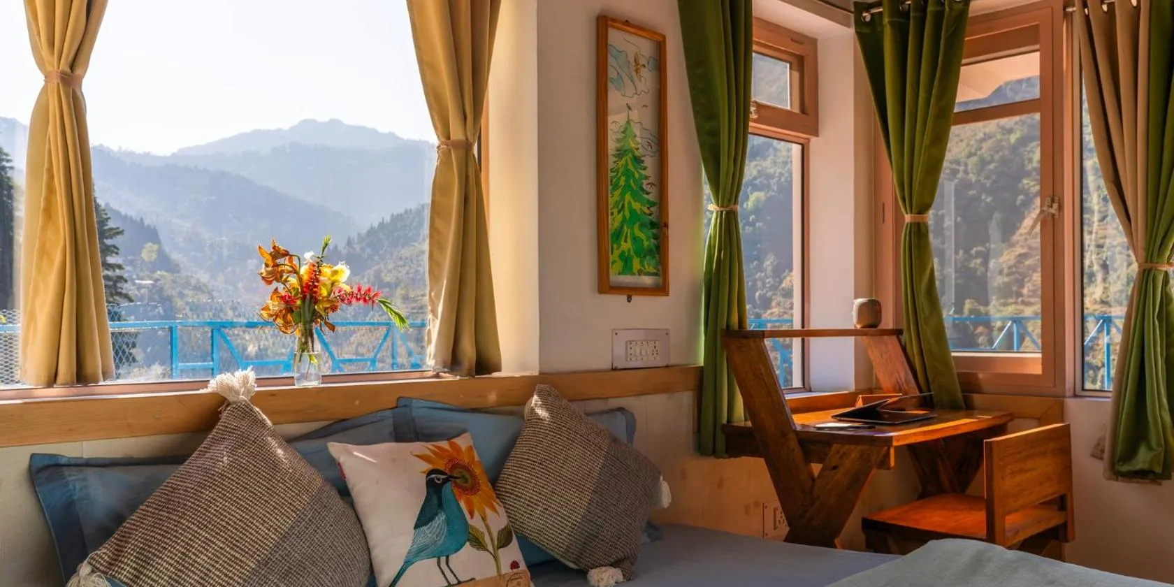 Slow By Poly- an experiential stay in Dehradun位于北安查尔邦的Rājpur,拥有阳台。这家度假屋提供免费私人停车位、共用厨房和免费WiFi。 这家度假屋享有市景,铺有瓷砖地板,配有1间卧室以及3间带淋浴设施和免费洗浴用品的浴室。这家度假屋提供山景露台,也提供厨房和3间浴室。