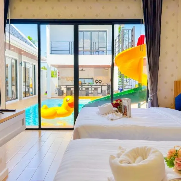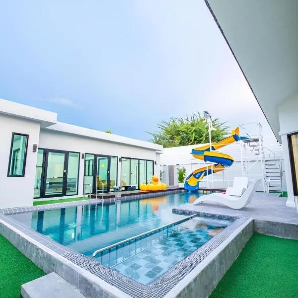 V Pool Villa Sattahip位于梭桃邑,提供免费WiFi和平板电视等设施,距离东星高尔夫球场有21公里,距离翡翠高尔夫度假村有25公里。这家自助式别墅配有私人泳池、花园和免费私人停车位。 这家空调别墅配有3间独立卧室、设施齐全的厨房以及4间浴室。这家别墅也为客人提供4间浴室。 这家别墅距离梭桃邑海军基地有2.8公里,距离卡通频道主题水上乐园有15公里。