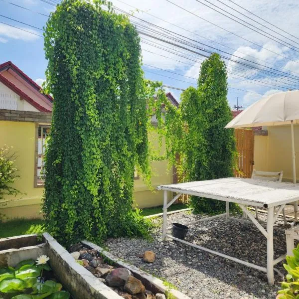 ณพักเพลิน@สัตหีบ位于梭桃邑,配备带免费WiFi的花园景客房,配有花园、共用休息室和露台。入住这家度假屋的客人可以使用阳台。 这家空调度假屋配有3间卧室、起居室、带炉灶和电热水壶的设施齐全的厨房以及2间带淋浴设施和免费洗浴用品的浴室。这家度假屋还提供平板电视以及2间带吹风机的浴室。...