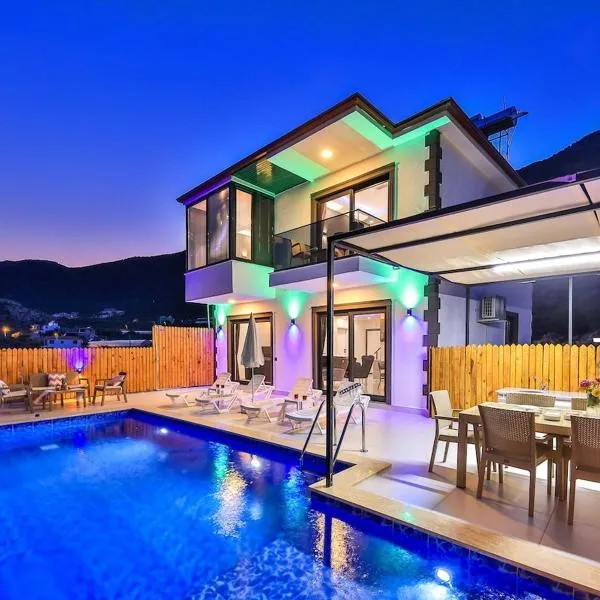Villa Ayşena - Doğanın Kalbine Küçük Bir Kaçamak位于卡斯,提供带免费WiFi的山景客房,配备季节性室外泳池、花园和露台。这家住宿提供私人泳池和免费私人停车位。 这家空调别墅配有3间卧室、起居室、带冰箱和咖啡机的设施齐全的厨房以及4间带淋浴设施和热水浴池的浴室。这家别墅还配备休息区、洗衣机以及4间带吹风机的浴室。 这家别墅提供热水浴池。