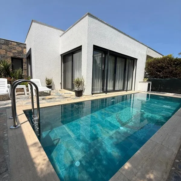 Villa Aleph-Kiralık Müstakil havuzlu lüx villa位于博德鲁姆,配备带免费WiFi的市景客房,配有户外游泳池、花园和共用休息室。这家别墅提供免费私人停车位和共用厨房。 这家空调别墅配有3间卧室、起居室、带冰箱和咖啡机的设施齐全的厨房以及2间带淋浴设施和免费洗浴用品的浴室。2间浴室提供吹风机。 这家别墅配备露台供客人使用。