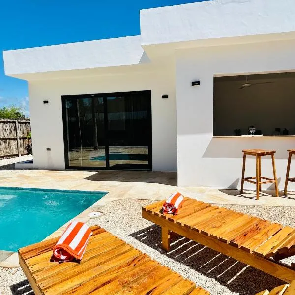 Halisi holiday home, by Liv Zanzibar坐落于帕杰,距离帕杰海滩(Paje Beach)有8分钟步行路程,距离和平纪念博物馆有49公里,配备免费WiFi和空调。客人可以使用带室外泳池的花园。 每间房间都提供露台、带冰箱的设施齐全的厨房、带沙发床休息区、平板电视以及带坐浴盆和吹风机的私人浴室。