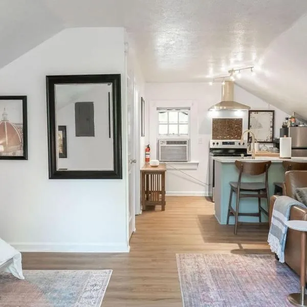 The Loft at Park Place Cozy Studio on the Park坐落于哥伦布,距离画廊艺术有46公里,配备阳台、花园和免费WiFi。 这家空调度假屋配有1间独立卧室、带冰箱和烤箱的设施齐全的厨房以及1间浴室。1间浴室提供浴缸、免费洗浴用品和吹风机。 哥伦布机场距离住宿有5公里。