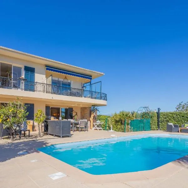 Belle maison avec piscine dans les hauteurs à Saint Raphael位于圣拉斐尔,提供带免费WiFi的市景客房,配备花园、共用休息室和露台。这家别墅配备免费私人停车位和共用厨房。 这家空调别墅配有5间卧室、起居室、带冰箱和咖啡机的设施齐全的厨房以及4间带坐浴盆和淋浴设施的浴室。4间浴室配有热水浴池,也提供免费洗浴用品,提供毛巾和床上用品。