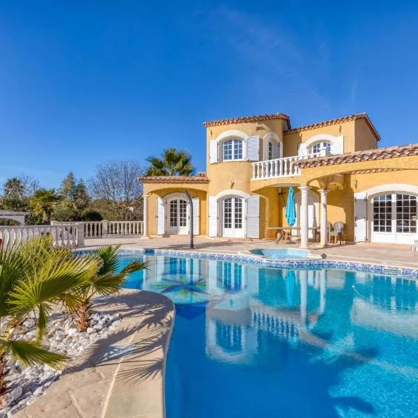Lovely Home In Agde With Wifi是一家豪华型住宿,位于朗格多克-鲁西永大区的阿格德,配备免费WiFi。这家自助式度假屋配有私人泳池、花园和免费私人停车位。 这家空调度假屋配有4间卧室、起居室、带冰箱和咖啡机的设施齐全的厨房以及2间带淋浴设施和浴缸的浴室。这家度假屋也为客人提供2间浴室。 这家度假屋配备室外泳池。 毕子尔阿格德机场距离住宿有12公里。