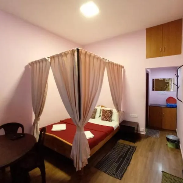kamalam Guest House Kodai坐落于科代卡纳尔,提供露台,享有花园景,距离科代卡纳尔湖有3.3公里,距离科代卡纳尔巴士站有3.5公里。这家住宿距离熊肖拉瀑布有3.2公里,配备花园和免费私人停车位。 这家公寓拥有1间卧室、带平板电视的起居室、设施齐全的小厨房以及1间带淋浴设施和免费洗浴用品的浴室。1间浴室提供浴缸和浴袍。 这家公寓提供儿童游乐场。 kamalam Guest...