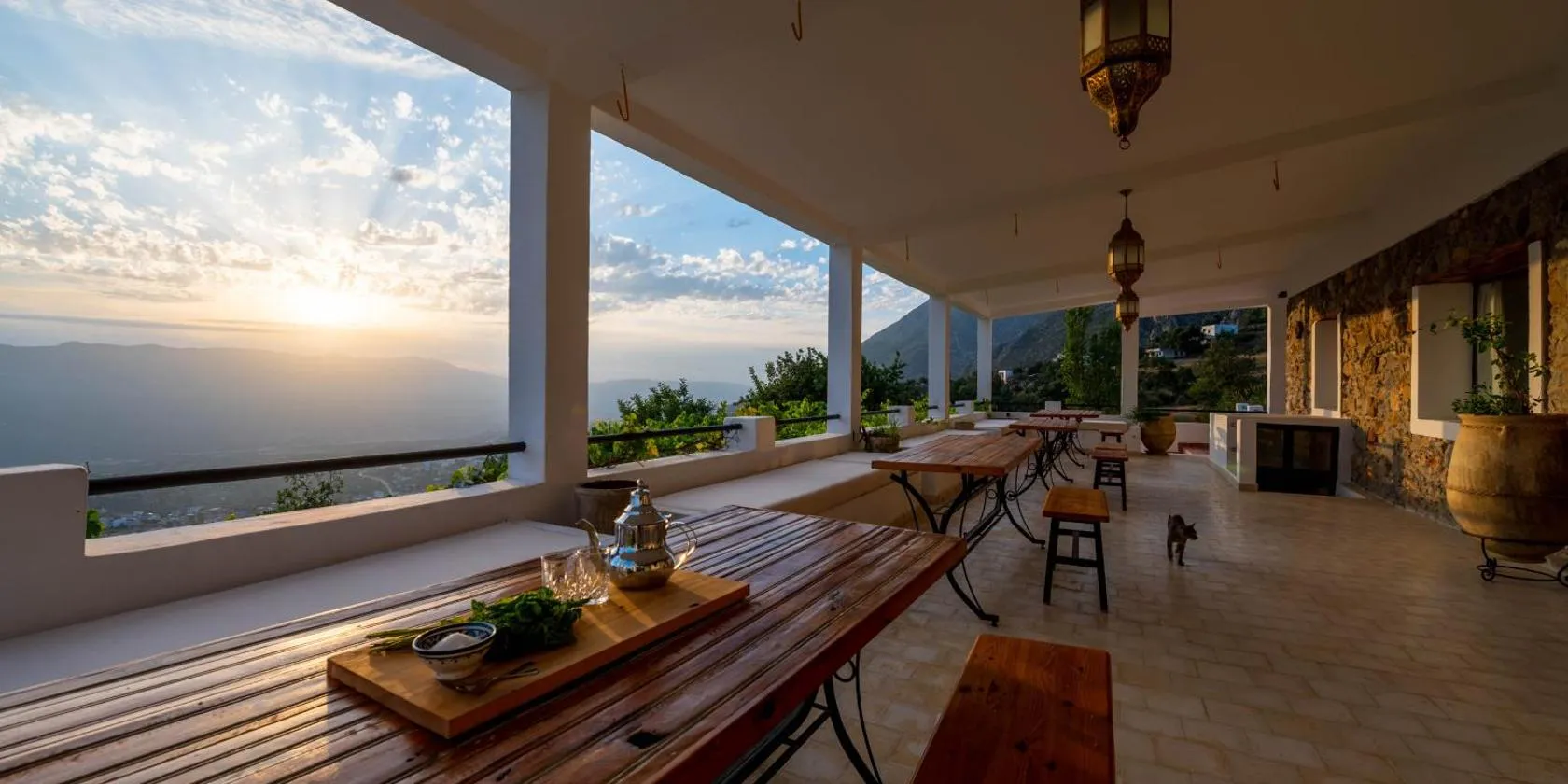 The food was excellent and it's a lovely place to stay with wonderful views. It's a lovely 45 minute walk from where the bus or taxis drops you off in town , Gare de Routiere. Walk up through the Medina and head for The Spanish Mosque.White building on hill and it's past that further up hill along the track.Taxi will take you another route along the road using a different route but won't take you all the way, you will still have a 10 min walk.