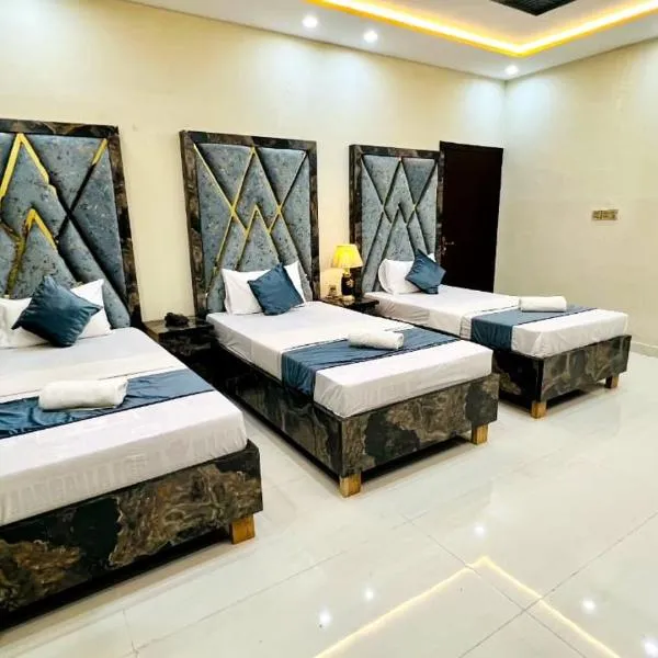 Luxus Gold Villa DHA Near Airport & Raya坐落于拉合尔,距离Wagah Border有31公里,配备花园、免费私人停车位、共用休息室和露台。这家住宿提供的设施包括客房服务、24小时前台以及免费WiFi。这家住宿防过敏,距离Packages Mall有13公里。...