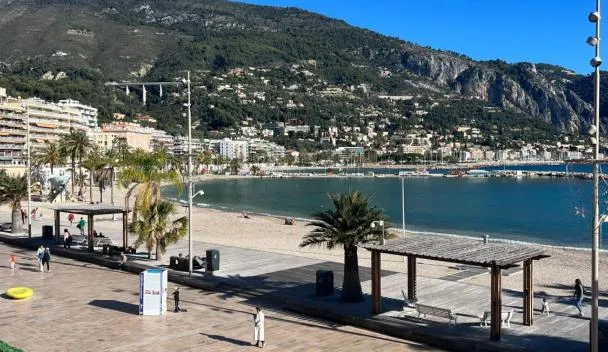Stunning beachfront apartment with parking享有海景,提供露台和庭院,距离摩纳哥格利马尔蒂中心约有8.3公里。这家空调住宿距离卡諾雷斯海灘(Plage de Carnoles)有几步路,为客人提供免费WiFi,内部提供私人停车位。 这家度假屋配备起居室以及带冰箱和洗碗机的设施齐全的厨房。这家度假屋提供毛巾和床上用品。