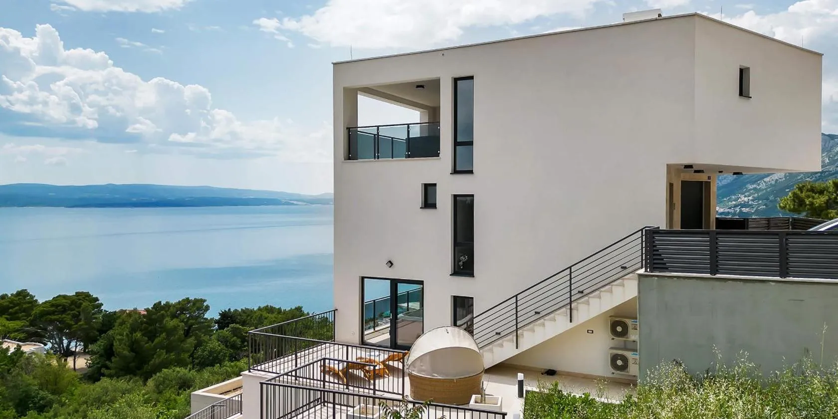 Villa Skalinada, 8 persons, Private Pool, Baška Voda位于巴什卡沃达,配备带免费WiFi的海景客房,配备季节性室外泳池、花园和共用休息室。这家豪华型别墅提供免费私人停车位,距离波盧卡海灘(Podluka Beach)有3分钟步行路程。 这家别墅配有5间卧室、2间浴室、床上用品、毛巾、带卫星频道的平板电视、用餐区、设施齐全的厨房以及市景露台。