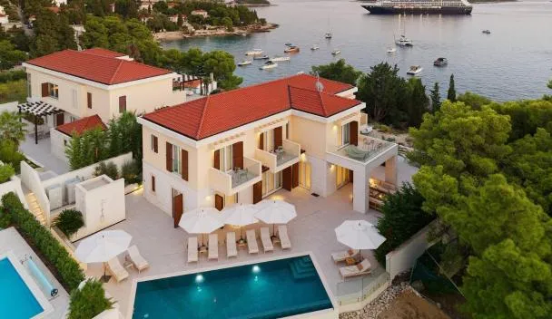 Featuring air-conditioned accommodation with a private pool, sea view and a patio, Magnificent Seafront Villa 10 Bedrooms Pakleni View is located in Hvar.