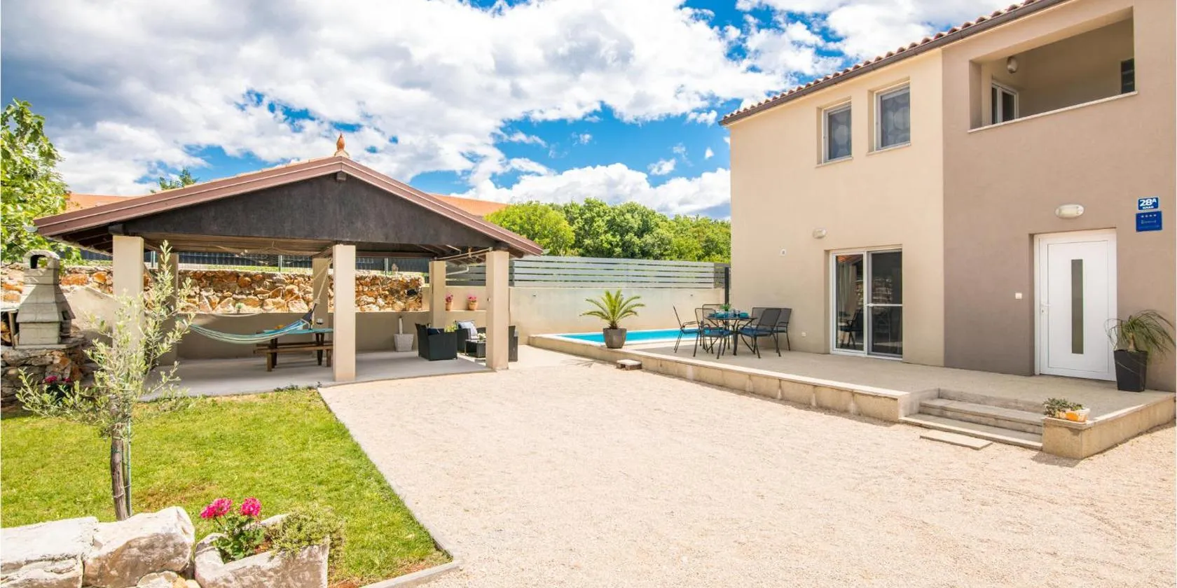 Villa with pool, garden, in a quiet small village - by Traveler tourist agency Krk - ID 2179位于克拉斯,提供带免费WiFi的池景客房,配备季节性室外泳池、花园和露台。这家住宿提供私人泳池和免费私人停车位。 这家空调别墅配有3间卧室、起居室、带冰箱和咖啡机的设施齐全的厨房以及4间带淋浴设施的浴室。