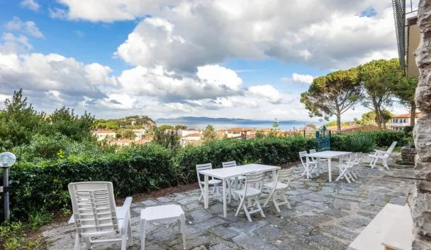 Elbamare residence con piscina享有山景,配备季节性室外泳池、花园和餐厅,距离尼斯波尔图海滩(Nisporto Beach)约有几步路。这家海滨住宿的客人可以使用桌球台、乒乓球桌和免费私人停车位。 这家度假屋享有海景,配备露台,配有1间卧室、起居室、卫星频道平板电视、设施齐全的厨房以及1间带坐浴盆和淋浴设施的浴室。1间浴室提供吹风机。