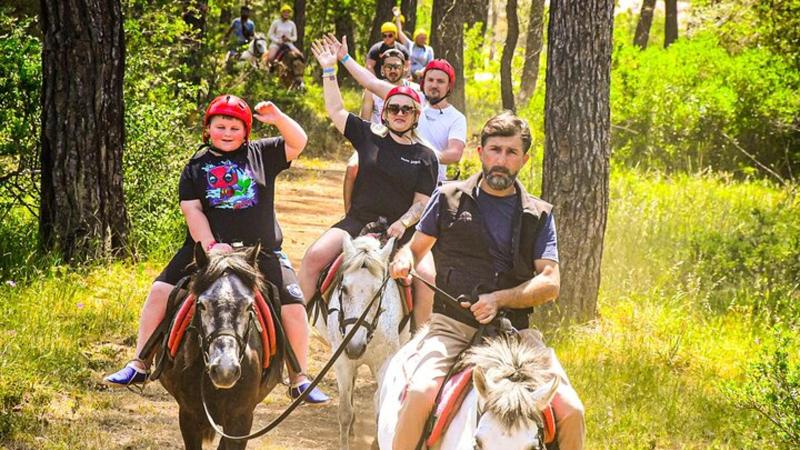 骑马探索乡村。在美丽的山上或鬼城。在讨价还价中获得一个不错的晒黑。马适合所有骑马能力,经验是没有必要的。提供安全帽。课程可用。