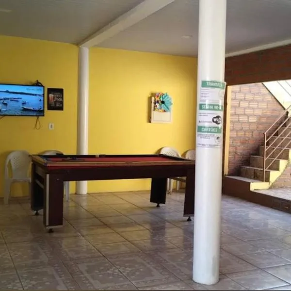 Quarto compartilhado com ar condicionado banheiro externo compartilhado坐落于阿尔特杜尚,配备免费WiFi、空调和私家海滩,距离阿尔特杜尚海滩(Alter do Chao Beach)有2.3公里,距离圣塔伦港有36公里。这家住宿享有花园景,提供阳台。 这家家庭式住宿配备毛巾和床上用品。 这家家庭式住宿供应欧陆式早餐。