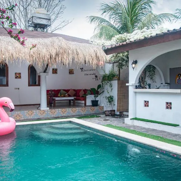 Situated 700 metres from Gili Air Beach, Amel House is a recently renovated 1-star accommodation in Gili Air, boasting an outdoor swimming pool, a garden and parking on-site.