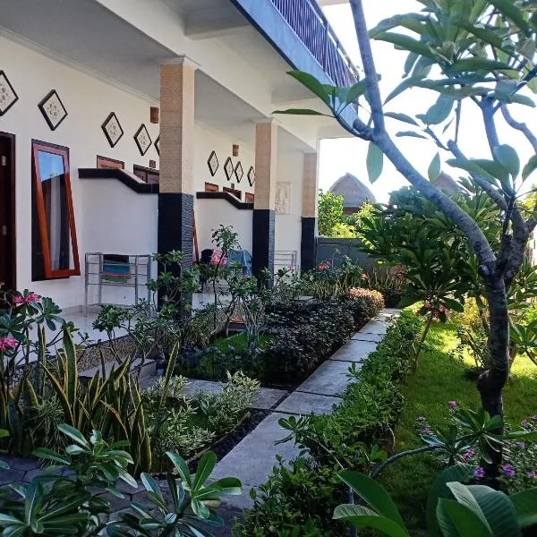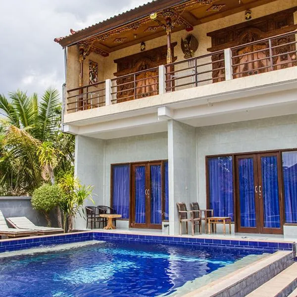 Pattri Garden Lembongan旅馆位于伦邦岸岛(Nusa Lembongan),距离蘑菇海滩(Mushroom Beach)不到200米,提供快速办理入住和退房服务、室外游泳池、免费WiFi、花园、家庭间、露台、客房服务、礼宾服务以及外币兑换服务。 Pattri Garden Lembongan旅馆的客房享有泳池景致,配有休息区、带坐浴盆和吹风机的私人浴室、空调以及衣柜。
