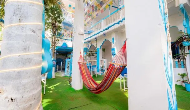 Tropical Wave Hostel Morjim Goa位于莫尔吉姆,距离莫吉姆海滩(Morjim Beach)有7分钟步行路程,提供健身中心、免费私人停车位、花园和共用休息室。这家住宿距离恰波拉堡有13公里,距离蒂维姆火车站有20公里,距离提拉科尔堡有24公里。这家青旅提供露台,享有花园景。客人可以在餐厅享用餐点或在酒吧享用饮品。 这家青旅的每间客房都拥有书桌。