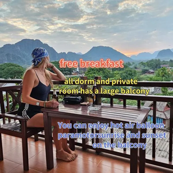 Vang Vieng Freedom Rooftop View Hostel位于万荣,提供舒适型住宿,拥有户外游泳池、共用休息室和餐厅,距离Post Office有几步路。这家住宿距离谭昌象洞约有2.3公里,距离Kaeng Nyui Waterfall有6.9公里,距离塔姆普康姆洞穴和蓝色泻湖有12公里。住宿配备24小时前台、机场交通服务、客房服务以及免费WiFi。...