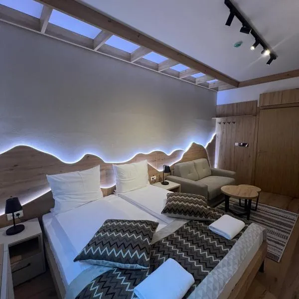 Super G - VUCCKO位于亚霍里纳,享有山景,提供餐厅、客房服务、酒吧、花园和露台。住宿提供免费WiFi,可以安排额外收费的私人停车位。 部分房间提供卫星频道平板电视、带冰箱的设施齐全的厨房,以及带热水浴池和吹风机的私人浴室。 这家公寓提供滑雪设备租赁服务和滑雪设备存放处。客人可以在周边地区体验滑雪。