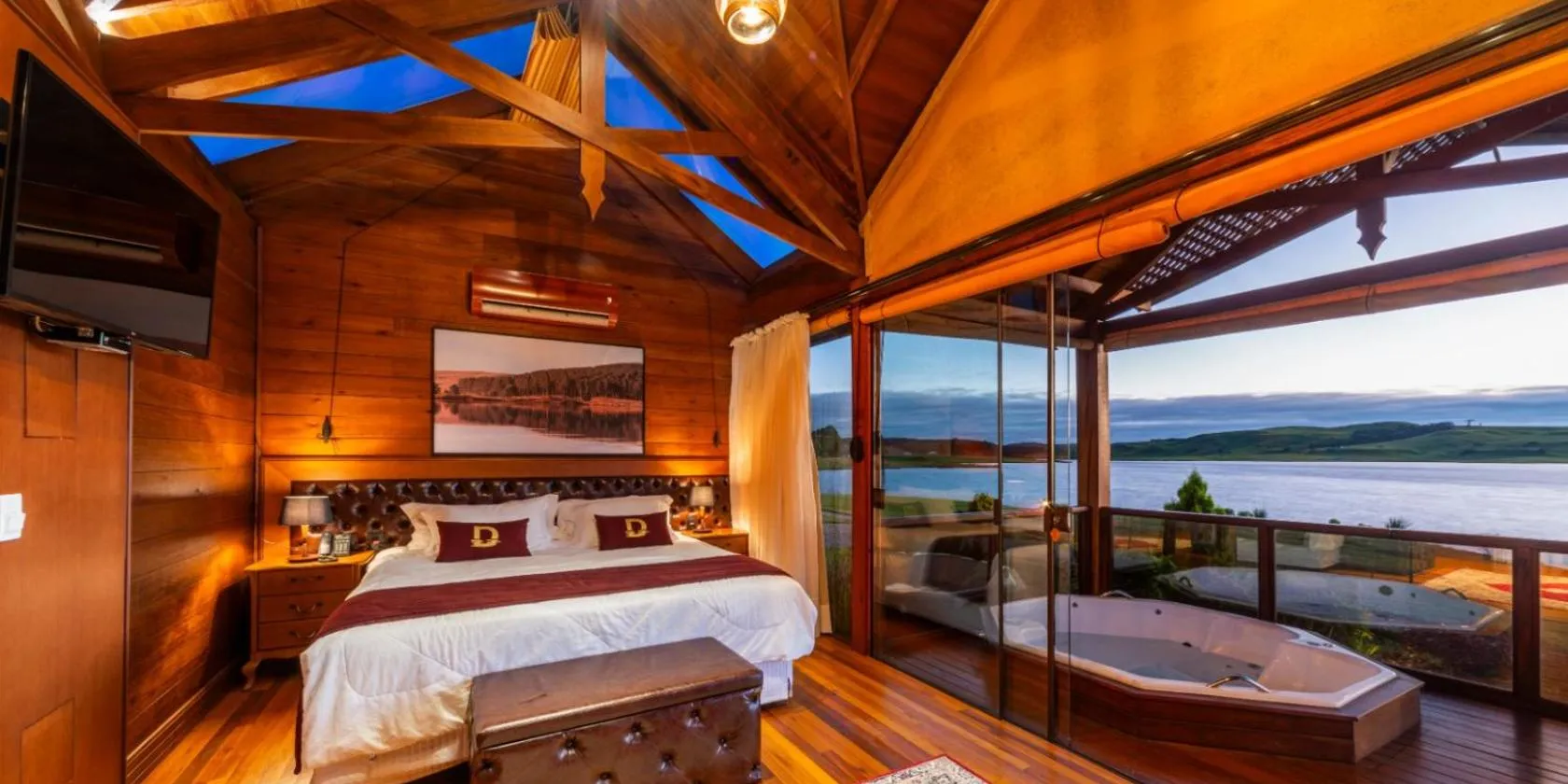 Celeiro Lake Village位于圣弗朗西斯科-迪保拉,享有花园景,提供户外游泳池、花园、共用休息室、露台和餐厅。住宿提供的免费WiFi,内部提供私人停车位。 每间房间都配备带迷你吧的设施齐全的小厨房、壁炉、带沙发休息区、平板电视以及带淋浴设施和免费洗浴用品的私人浴室。部分房间提供阳台和/或湖景庭院。 这家山林小屋供应自助早餐。 Celeiro Lake...
