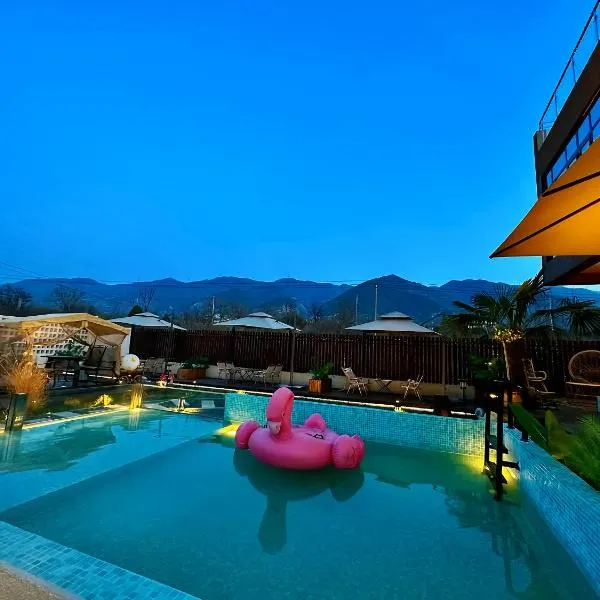 With Terracotta Army reachable in 1.5 km, Qingqian Guanshan Swimming Pool Private Hot Spring B&B features accommodation, a restaurant, a seasonal outdoor swimming pool, a garden and a terrace.