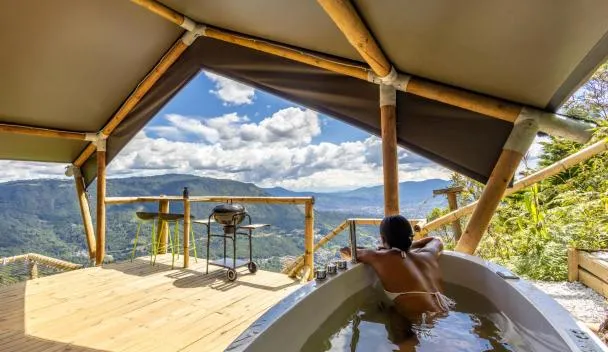 Boasting mountain views, Luna Verde Eco Hábitat features accommodation with an open-air bath and a patio, around 17 km from El Poblado Park.