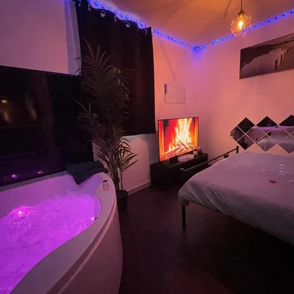Nuit d'évasion love room avec baignoire balnéothérapie坐落于土伦,距离土伦火车站仅有17分钟步行路程,提供海滨住宿、露台和免费WiFi。这家住宿距离土伦欧米茄展览中心有13分钟步行路程,配备花园和免费私人停车位。 这家空调1卧室公寓提供1间浴室,配备热水浴池、浴缸和免费洗浴用品。小厨房提供冰箱和微波炉。住宿提供1间带吹风机和浴袍的浴室。