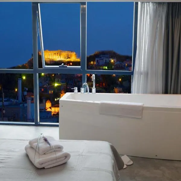 NEW! Unbelievable Acropolis View Jacuzzi flat!位于雅典,地处中心,配备spa浴缸,享有山景。入住这家公寓的客人可以使用免费WiFi和阳台。 这家公寓配备1间卧室、1间浴室、床上用品、毛巾、平板电视、用餐区、设施齐全的厨房以及市景露台。这家空调公寓还提供休息区以及1间带淋浴设施、热水浴池和浴缸的浴室。 这家公寓的客人可以使用热水浴池。 NEW!